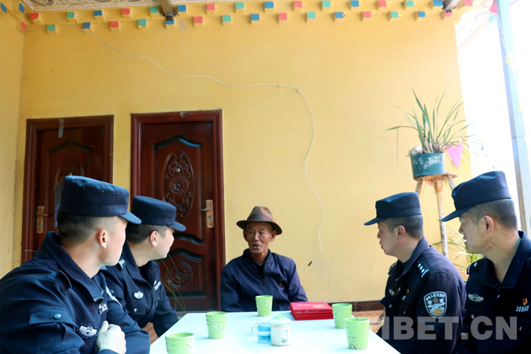 金秋時(shí)節(jié),秋高氣爽,10月14日上午,上察隅邊境派出所的民警們一大早將前幾日購(gòu)買的慰問(wèn)品,裝到單位車上,準(zhǔn)備前往轄區(qū)米古村老黨員卡布羅的家,給他送重陽(yáng)節(jié)的暖意問(wèn)候。當(dāng)看到邊境派出所的民警到家中時(shí),年近八旬的卡布羅老人熱情地招呼民警們進(jìn)屋坐下,并為民警們倒上熱騰騰的酥油茶。