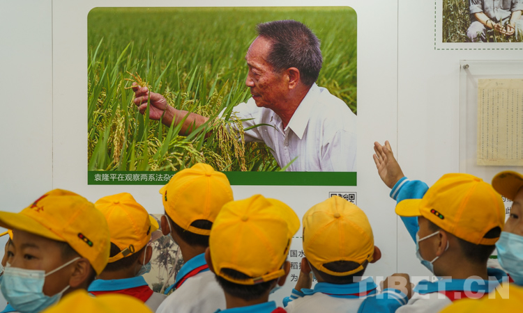 一張張照片中,一位正在觀察水稻的老人學生們幾乎都認識?!拔抑涝∑綘敔?,是他讓人們不再餓肚子。”“雖然現(xiàn)在糧食產(chǎn)量增加了,但我們還是要記住不能浪費糧食?!?學生們你一言我一語爭相發(fā)言。