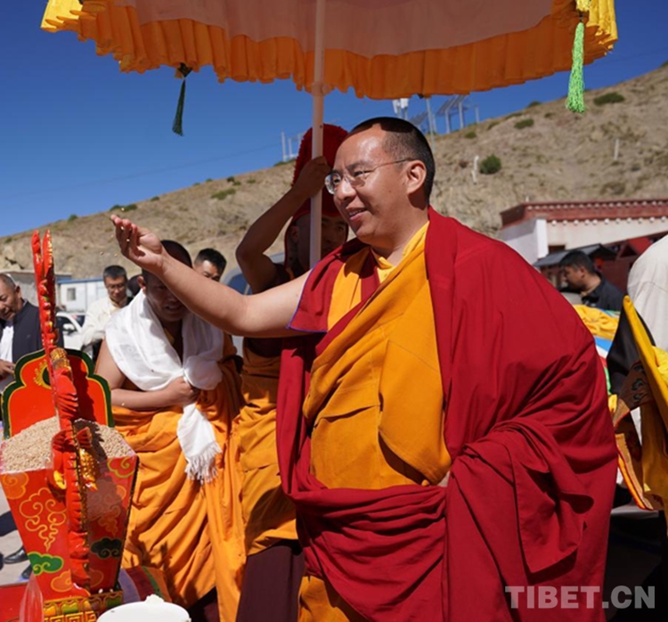 圖為班禪在增寺拋灑青稞、祈愿豐收 攝影:王淑