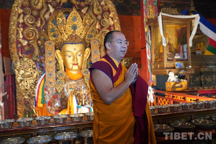 圖為班禪在強(qiáng)欽寺禮佛 攝影:王淑