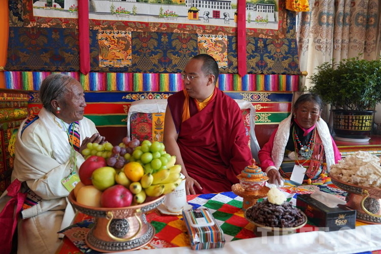 圖為班禪在歐珠家詢問搬遷后的生活情況 攝影:王淑