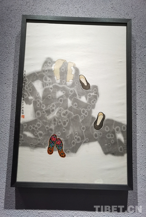 圖為西藏當(dāng)代美術(shù)作品精品展現(xiàn)場展品 攝影;王淑