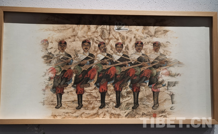 “此次展覽相對齊全,體現(xiàn)了當(dāng)代藝術(shù)家,在總書記文藝系列講話的鼓舞和指引下,以人民為中心關(guān)注生活,關(guān)注西藏。認(rèn)真地用自己的語言、藝術(shù),思維來表現(xiàn)社會主義新西藏方方面面的日新月異和成果,我覺得這樣的成果是實(shí)實(shí)在在地向中國共產(chǎn)黨成立100周年和西藏和平解放70周年獻(xiàn)禮?!敝嫾翼n書力說。