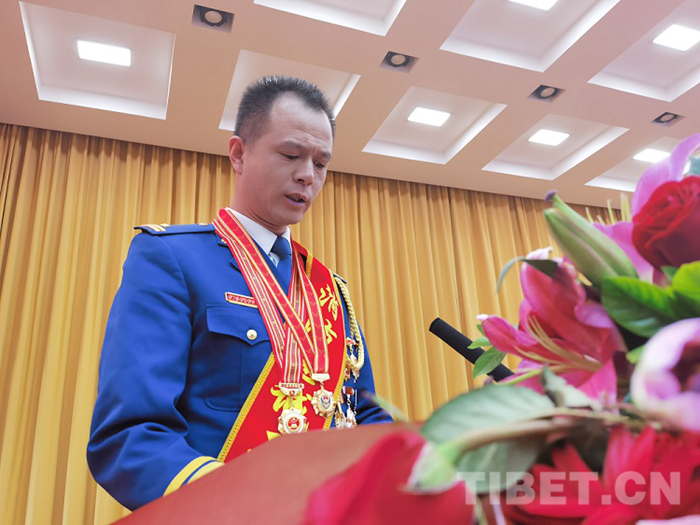 圖為全國應(yīng)急系統(tǒng)先進(jìn)模范、中國消防忠誠衛(wèi)士西藏代表 攝影:王佳豪