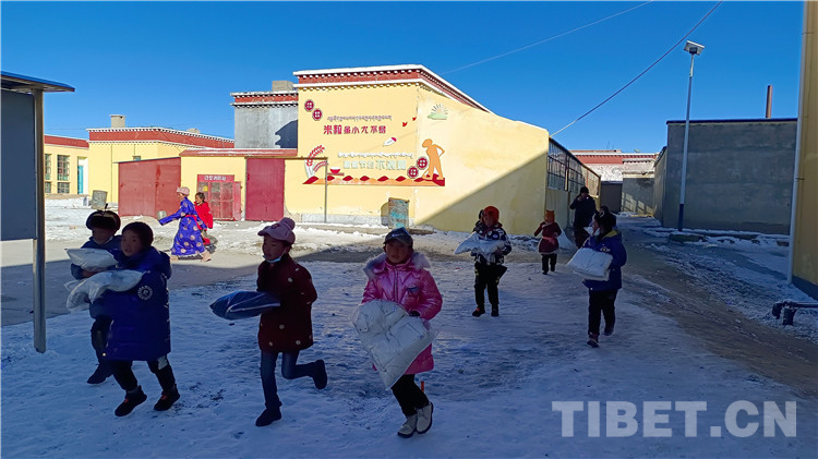 中國(guó)西藏網(wǎng)訊 “孩子們,排好隊(duì),快到食堂去領(lǐng)羽絨服?!?央吉措姆老師高興地對(duì)一年級(jí)的學(xué)生說(shuō)。待孩子們來(lái)到食堂,這里已是熱鬧一片,看到掛著“學(xué)史力行、愛(ài)聚藏鄉(xiāng)、童心向黨”愛(ài)心羽絨服發(fā)放儀式的橫幅,孩子們才恍然大悟,原來(lái)是援藏的叔叔給大家送新羽絨服來(lái)了。