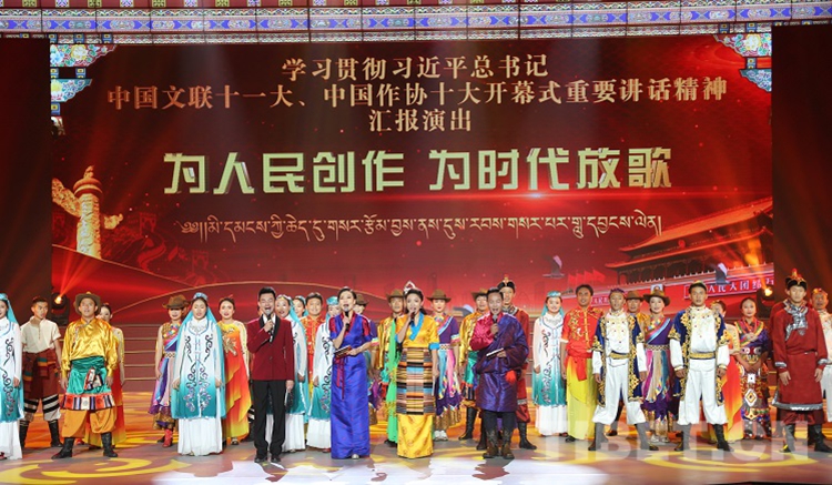 12月19日,“為人民創(chuàng)作 為時(shí)代放歌——西藏拉薩學(xué)習(xí)貫徹習(xí)近平總書記在中國(guó)文聯(lián)十一大、中國(guó)作協(xié)十大開幕式上的重要講話精神匯報(bào)演出”在西藏自治區(qū)拉薩市盛大開演。拉薩市文藝界代表和各族各界干部群眾歡聚一堂、載歌載舞,唱出新時(shí)代的旋律、舞動(dòng)新時(shí)代的風(fēng)采,把新時(shí)代的贊歌傳遍古城拉薩、獻(xiàn)給各族群眾。