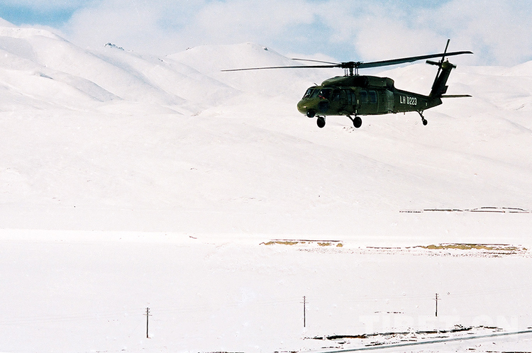 旋即,首都北京來(lái)電,中央派運(yùn)輸機(jī)空投物資。1990年3月23日,銀燕展翅藏北,身為新華社西藏分社攝影記者的我,登上空投救援的大飛機(jī)跟隨采訪。不幾日,中央又電令兩架“黑鷹”直升飛機(jī)投入到緊張的抗災(zāi)救災(zāi)工作中。