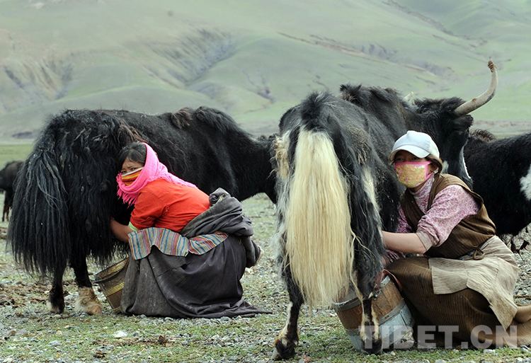 這是那曲地區(qū)(現那曲市)申扎縣申扎鎮(zhèn)三村牧女正在擠牦牛奶(唐召明2009年攝)