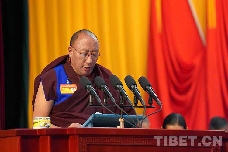 圖為西藏自治區(qū)政協(xié)十一屆五次會(huì)議第二次大會(huì),宗教界政協(xié)委員發(fā)言 攝影:王淑