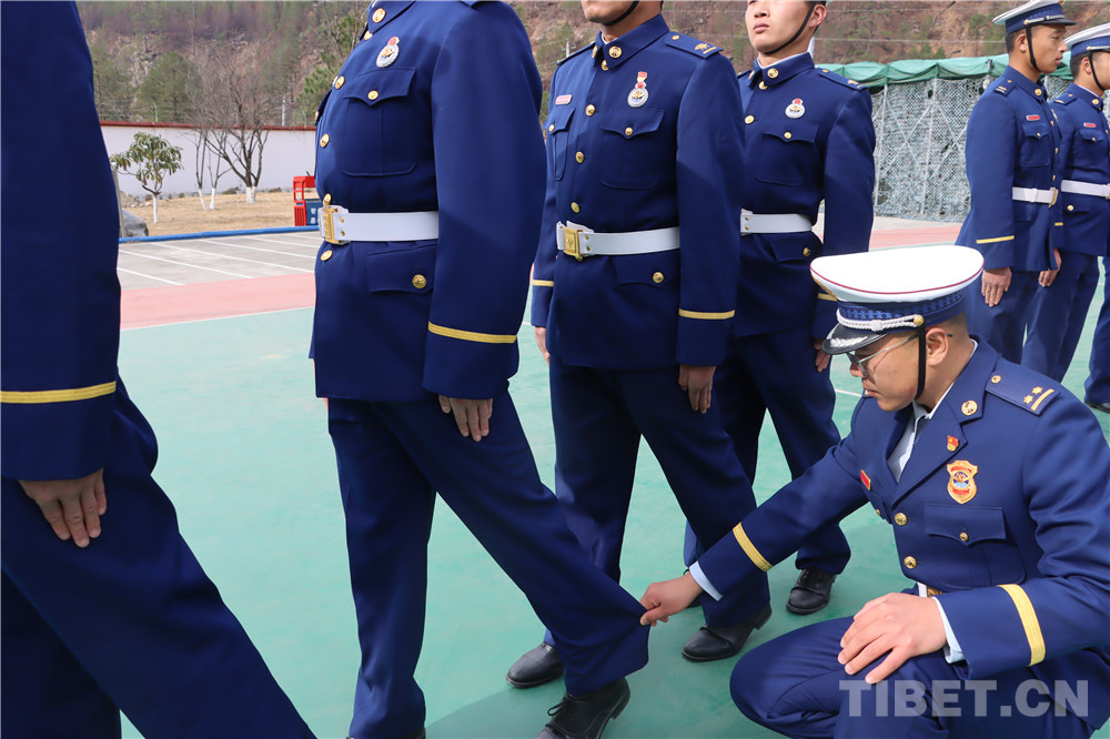 圖為西藏自治區(qū)林芝市察隅縣森林消防中隊進行隊列訓(xùn)練