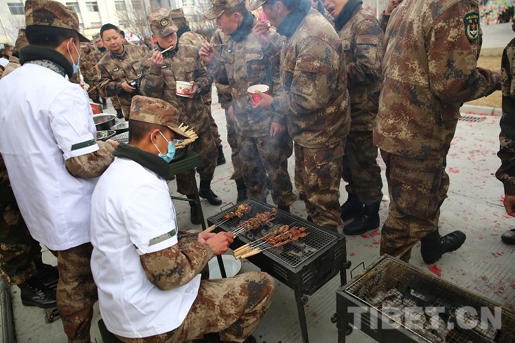 民以食為天,這么喜慶熱鬧的場(chǎng)面怎么少得了吃呢?據(jù)了解,本次“小吃一條街”一共設(shè)有蛋撻、狼牙土豆、燒烤、小酥肉、鮮肉餅、冰糖葫蘆、烤羊肉串等十幾種由官兵親手制作的小吃。官兵們及來隊(duì)家屬和軍娃來回穿梭在各個(gè)“門店”之間,盡情地享受著“舌尖上的美味”。