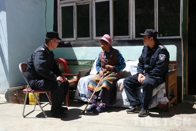2021年6月,背崩邊境派出所的民警在日常的下鄉(xiāng)走訪中,發(fā)現(xiàn)了白瑪央金一家的窘境——丈夫不在,白瑪央金體弱多病干不了農(nóng)活,小女兒在外省讀大學(xué)需要學(xué)費(fèi)、三個(gè)孫兒到了要去幼兒園的年紀(jì)、兩個(gè)兒子每天在農(nóng)田里忙碌卻收入淺薄,一大家子的壓力全部都?jí)涸谶@個(gè)老婦人身上,讓白瑪央金喘不過氣來。派出所黨支部針對(duì)他們家的情況,決定聘請(qǐng)白瑪央金老人其中的一個(gè)兒子達(dá)瓦平措為派出所的輔警,這樣達(dá)瓦平措既能照顧到家里的老人,也能有一份穩(wěn)定的收入緩解家里的壓力。
