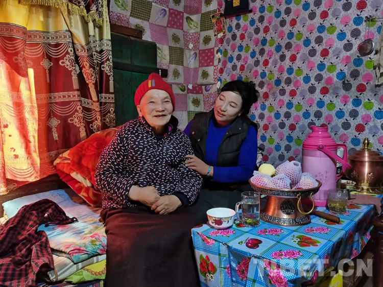 今年73歲的玉蘭老人,在崗?fù)写迳盍硕嗄?,她的父親是來自四川的漢族,母親是崗?fù)写宓牟刈?,從小就在藏漢結(jié)合家庭中成長起來?,F(xiàn)在,在女兒沖旺姆的精心照料下,過著安詳幸福的晚年生活。江達縣崗?fù)墟?zhèn)黃格村村民玉蘭說:“大概二十多年前,我們搬到了崗?fù)写迳睿@么多年,鄉(xiāng)里、村里的領(lǐng)導(dǎo)對我們家很照顧,我感覺現(xiàn)在生活的很好,很滿意!”