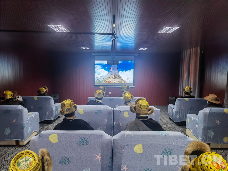 圖為帕里邊境派出所民警邀請(qǐng)群眾開(kāi)展觀影活動(dòng)