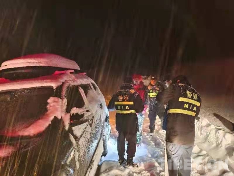 在前往救援途中,民警陸續(xù)又接到3起報警求助電話??梢源_定至少4輛車輛被困。救援工作刻不容緩,竹瓦根邊境派出所民警頂風冒雪,經過3個小時的艱難長途跋涉,克服高海拔缺氧,道路側滑等危險和困難,及時趕到事故現場開展救援。截至4月2日凌晨3點30分,竹瓦根邊境派出所民警先后救助被困車輛4臺,救助被困群眾8人。在護送返回途中,一行人員又遭遇雪崩,道路受阻。移民警察和當地養(yǎng)護段工作人員共同努力,用2個小時,打通了一條“生命大通道”,成功將被困群眾和車輛安全轉移。