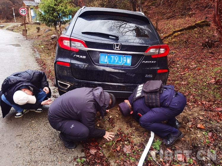 “我們來了,不用慌!”抵達(dá)現(xiàn)場后,移民管理警察向游客送上礦泉水,安撫游客情緒,隨后對現(xiàn)場進(jìn)行拍照取證,并使用警車幫助車輛脫困。經(jīng)過半個(gè)多小時(shí)的救援,車輛成功脫困,但由于受損嚴(yán)重,在警車護(hù)送下行駛2公里后無法繼續(xù)返回縣城。