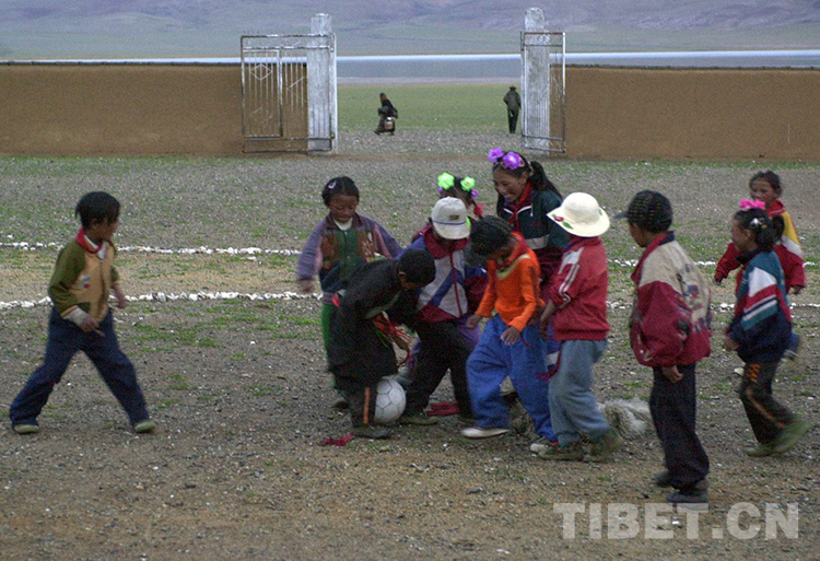 這是雙湖特別區(qū)(從雙湖辦事處改名而來(lái),現(xiàn)為雙湖縣)嘎措鄉(xiāng)小學(xué)學(xué)生在課余時(shí)間踢足球(唐召明2001年攝)