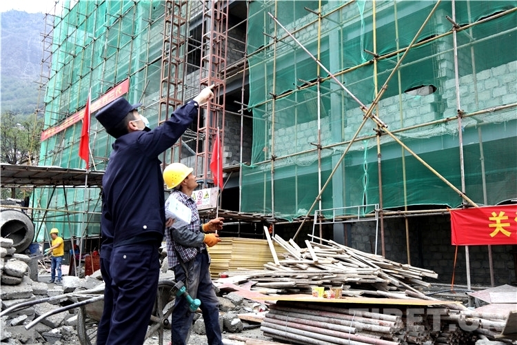 圖為民警在施工現(xiàn)場為群眾講解施工安全注意事項 攝影:鄒興國