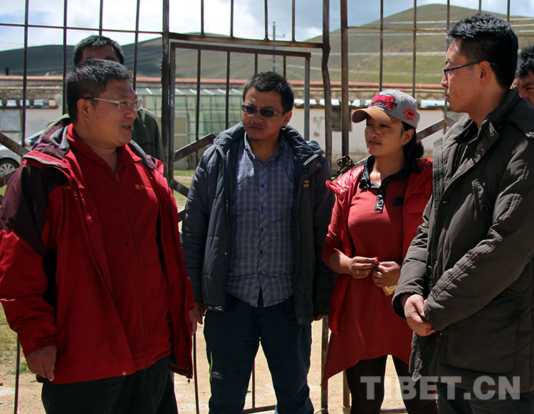 這是中國石化援藏干部王鵬雁(左一)在班戈縣青龍鄉(xiāng)衛(wèi)生院檢查指導(dǎo)工作(扎西2014年8月9日攝)