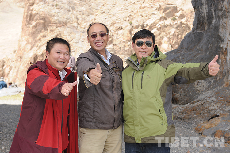 這是中國石化援藏干部王鵬雁(左)與一同援藏的常務(wù)副縣長王飛(右)及來采訪的新華社記者唐召明(中)合影留念(王琪2015年5月20日攝)