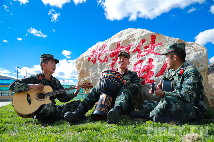 中國西藏網(wǎng)訊 近日,駐守在平均海拔4300米的西藏自治區(qū)昌都市八宿縣邦達(dá)鎮(zhèn)的武警第二機(jī)動(dòng)總隊(duì)某支隊(duì)官兵,充分發(fā)揮興趣愛好特點(diǎn),開展了樂隊(duì)演奏、書香軍營、讀書分享會(huì)等特色軍營文化活動(dòng),豐富了高原軍營文化生活,進(jìn)一步鑄牢了青年官兵扎根高原、建設(shè)邊疆的堅(jiān)定理想信念。圖為該支隊(duì)官兵正在彈奏自編歌曲《青春高原》 攝影:陸文凱(中國西藏網(wǎng) 通訊員/陸文凱)