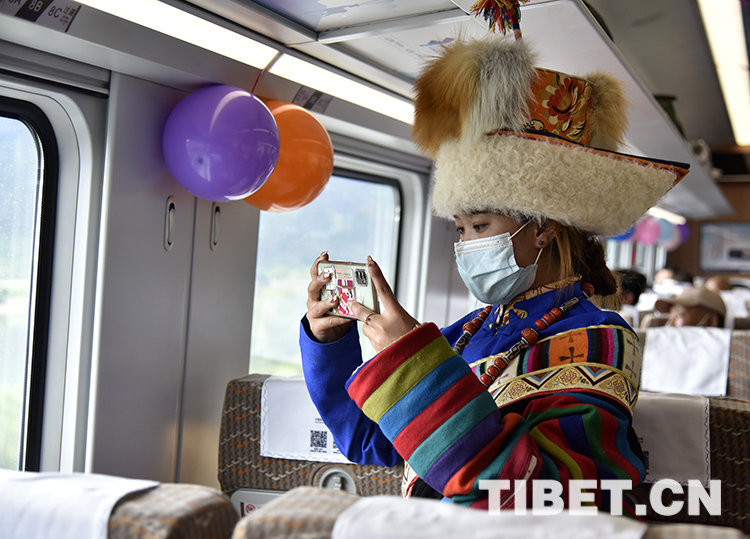 與斯朗旺扎的特別安排不同,游客胡菊萍和章猛飛是恰巧趕上了。一行人于6月23日抵達拉薩,在游覽了山南市的昌珠寺、雍布拉康等景點后,準備從山南搭乘火車前往林芝繼續(xù)游玩。胡菊萍告訴記者,2007年,她也曾搭乘火車從西寧到拉薩旅游?!澳菚r候,翻唐古拉山,身體特別不舒服。今天乘坐復興號,感覺特別好。過隧道時,一點都沒有耳鳴的反應,手機也有信號?!焙掌即蛩愣嗯囊稽c車窗外的景色,留存回憶的同時也要分享給家里人。