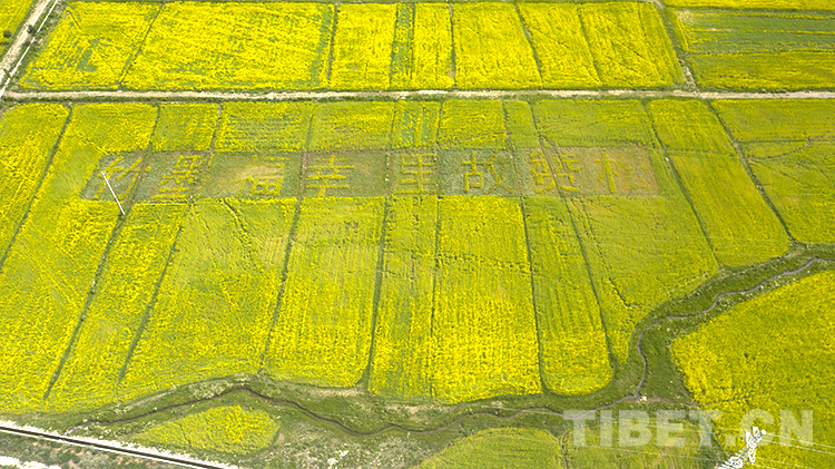 值得一提的是,在扎西崗鄉(xiāng)主會場,當(dāng)?shù)貙⒒牡刂匦麻_墾,安排種植了油菜花大地景觀。不同品種、不同顏色的油菜花海為背景的種植,從空中俯瞰形成了“喜迎二十大”“松贊故里 幸福墨竹”字樣和松贊干布、文成公主、哈達(dá)、愛心等圖樣,表達(dá)當(dāng)?shù)厝罕娤灿h的二十大的美好祝福。