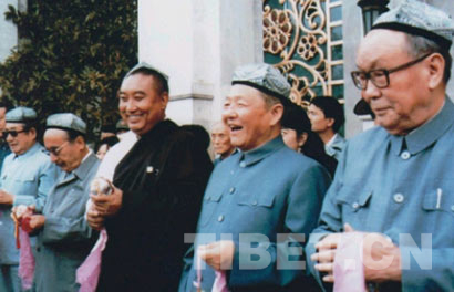 圖為習仲勛(右二)與烏蘭夫(右一)、十世班禪(右三)、賽福鼎?艾則孜(右四)、楊靜仁(右五)在北京民族文化宮。圖片來源:《中國西藏》雜志
