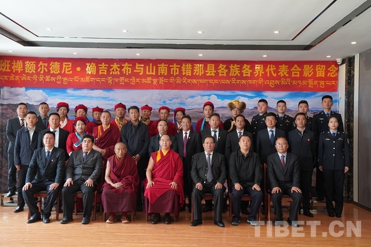 圖為班禪與錯那縣各族各界代表合影留念 攝影:王淑