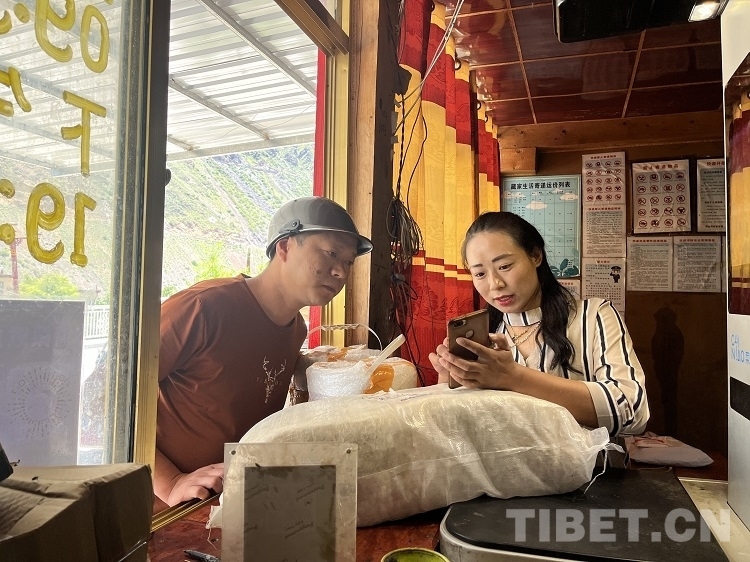 圖為曲孜卡鄉(xiāng)達(dá)許村快遞收發(fā)站工作人員斯郎擁珍 攝影:許娜