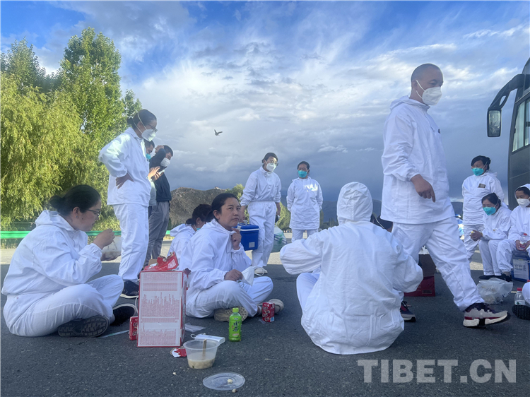 旦增群培,瓊結(jié)縣加麻鄉(xiāng)衛(wèi)生院院長兼瓊結(jié)鎮(zhèn)衛(wèi)生院負責人,他說:“沒什么可說的,就是聽從組織安排,哪里需要哪里上。隊員們?yōu)榱斯?jié)約物資,減少傳播概率,一直保持著早上工作開始后中間不休息,堅持到下午才吃飯的工作模式。經(jīng)過大家的團結(jié)一致,出色地完成了本次任務。”