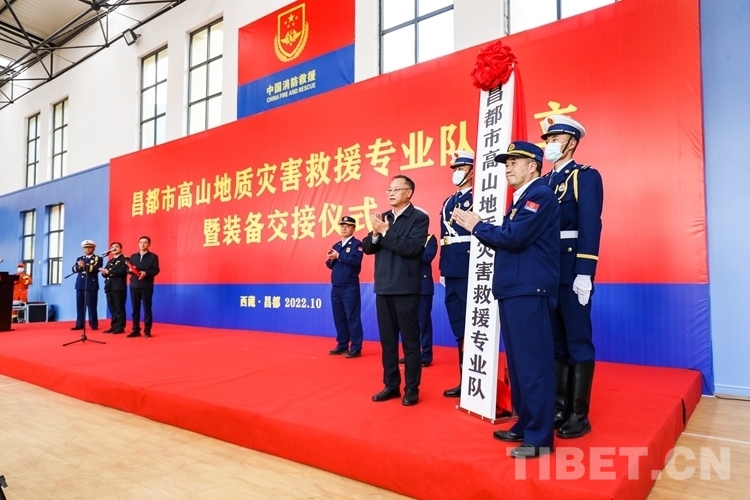 圖為昌都市高山地質(zhì)災(zāi)害救援專業(yè)隊成立暨裝備交接儀式現(xiàn)場