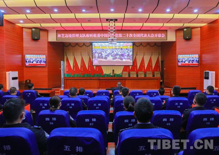 中國(guó)西藏網(wǎng)訊 10月16日上午10點(diǎn),伴隨著莊嚴(yán)的國(guó)歌,舉世矚目的中國(guó)共產(chǎn)黨第二十次全國(guó)代表大會(huì)在北京人民大會(huì)堂開幕。西藏自治區(qū)林芝邊境管理支隊(duì)各級(jí)民警通過電視、電腦、手機(jī)等方式在單位內(nèi)、執(zhí)勤點(diǎn)上、轄區(qū)里與群眾共同收看了黨的二十大開幕會(huì)直播。
