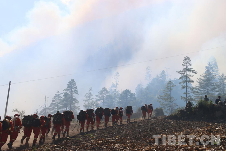 火場(chǎng)上,不說(shuō)有感天動(dòng)地的故事,但是那種“無(wú)畏火魔、不怕犧牲、舍我其誰(shuí)、團(tuán)結(jié)協(xié)作”的故事卻到處可見。那天,我們?cè)诮泳?,第一時(shí)間趕赴現(xiàn)場(chǎng),當(dāng)看到一條長(zhǎng)長(zhǎng)的火線猶如一條蜿蜒的巨龍盤旋在空檔村山腰,火舌在大風(fēng)助威下翻滾著向南側(cè)撲去時(shí),飛哥和我各帶領(lǐng)10名黨員骨干以南北兩翼夾擊的陣勢(shì)迎戰(zhàn)火魔。在高達(dá)2800米的原始林區(qū),夜里溫度接近-5℃,槍頭手高琪已全身上下濕透并伴隨冰片的出現(xiàn),隱約透著讓人冷顫的寒光,顫抖的身體讓槍頭不斷左搖右擺,但他毅然肩扛槍頭,勇斗火魔。撲救完畢后,剛要準(zhǔn)備休整,中隊(duì)接到殲滅山頂火點(diǎn)的任務(wù),火情就是命令,指戰(zhàn)員背著沉重的裝備在近70-80度的亂石陡坡上,抓著樹枝一步步向上攀爬,16年兵齡的王建紅在爬山過(guò)程中使勁喘息,即使空氣中彌漫著飛舞的灰,也為吸取更多的氧氣保持體力;接近山頂時(shí),一顆直徑約80cm的滾石從山頂滾落,體型弱小的二級(jí)消防士曹橋在緊促的避險(xiǎn)哨音中采取緊急避險(xiǎn)措施成功躲避,滾石與他擦肩而過(guò),但危險(xiǎn)的環(huán)境未能抑制他戰(zhàn)斗的決心。中隊(duì)指戰(zhàn)員暢談此次滅火作戰(zhàn)感受時(shí),都紛紛笑言:“我們從海拔2300米打到了3700米,相當(dāng)于從察隅到了拉薩?!?1日,中隊(duì)轉(zhuǎn)戰(zhàn)火場(chǎng)西南線,此時(shí)經(jīng)過(guò)5天的連續(xù)奮戰(zhàn),指戰(zhàn)員的思考能力和興奮的感覺消失殆盡,只剩下機(jī)械式行走的軀體,膝蓋有舊傷的戰(zhàn)斗班班長(zhǎng)王明因?yàn)槌?fù)荷運(yùn)動(dòng)已疼痛難忍,但他在咬牙堅(jiān)持。班長(zhǎng)宋遠(yuǎn)金、扎西歐珠主動(dòng)擔(dān)當(dāng)不畏艱險(xiǎn),從不到2300多米的地方,背著滅火裝備和滿滿的水桶,爬到4000米的山頂排除隱患,清理煙點(diǎn)。