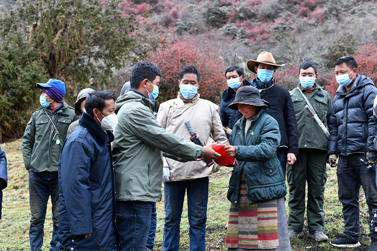 中國(guó)西藏網(wǎng)訊 日前,西藏自治區(qū)山南市玉麥鄉(xiāng)玉麥村第一書記索朗頓珠組織護(hù)邊員們開始了新一次的巡邏。臨行前,黨的二十大代表、“七一勛章”獲得者卓嘎特意叮囑索朗頓珠巡邏時(shí)要注意安全,走到哪里,就要把國(guó)旗帶到哪里,并把一面嶄新的國(guó)旗交到了索朗頓珠的手里。