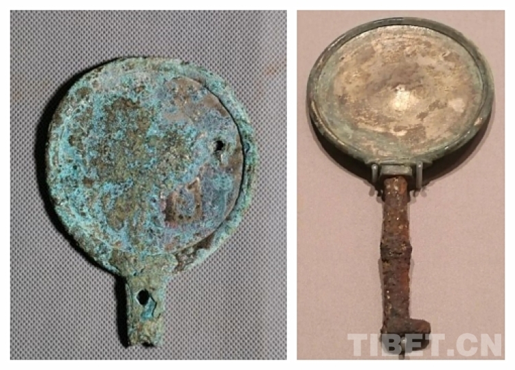 圖為西藏考古發(fā)現(xiàn)的帶柄銅鏡