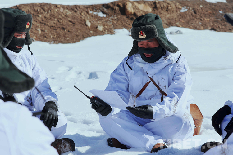 中國西藏網(wǎng)訊 連日來,駐守在“生命禁區(qū)”的西藏自治區(qū)阿里軍分區(qū)某邊防團以接地氣、多角度、全方位的形式掀起官兵學(xué)習(xí)黨的二十大精神熱潮。官兵把學(xué)習(xí)好、領(lǐng)會好、傳播好黨的二十大精神作為首要政治任務(wù),邊學(xué)習(xí)邊宣揚,讓黨的二十大精神在雪域邊關(guān)生根發(fā)芽。(中國西藏網(wǎng) 通訊員/劉曉東 記者/次旦拉姆)