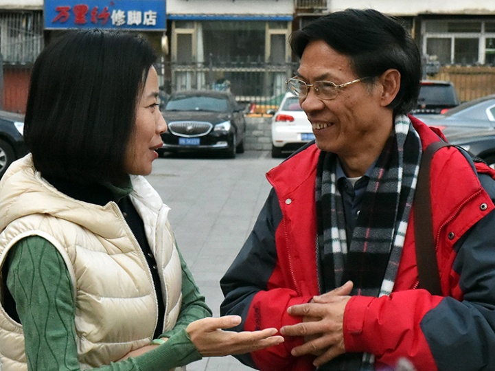 這是黃綿瑾(右)與中國評(píng)劇院院長侯紅(左)就評(píng)劇藝術(shù)進(jìn)行交流(唐召明2017年11月26日攝)