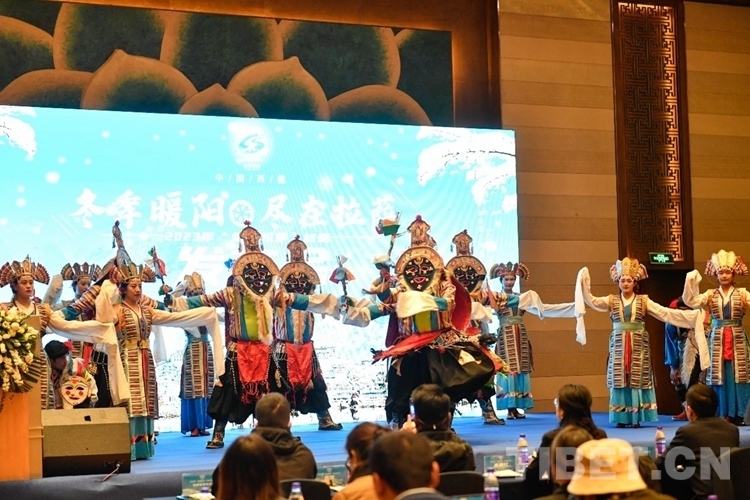 圖為“冬游拉薩”線路發(fā)布會(huì)現(xiàn)場(chǎng)歌舞表演 攝影:次旦拉姆