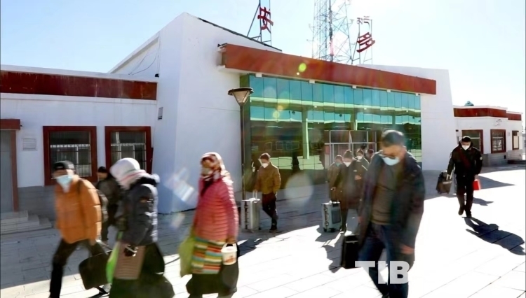 圖為從安多火車(chē)站出站的乘客