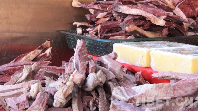 圖為年貨市場(chǎng)里的風(fēng)干牛肉 攝影:德吉卓瑪