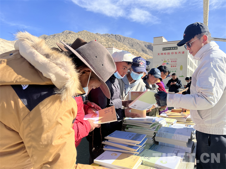 在送“書籍” 現(xiàn)場(chǎng),《西藏文學(xué)》《西藏文藝》《邦錦梅朵》三個(gè)編輯部工作人員為現(xiàn)場(chǎng)群眾和當(dāng)?shù)?span style="text-align: center; background-color: rgb(253,242,234)">干部贈(zèng)送書籍,當(dāng)?shù)厝罕姾蛯W(xué)生們紛紛前來(lái)翻看尋找自己喜歡的書籍,大家人手幾本書?!拔移綍r(shí)喜歡閱讀藏文文學(xué)作品,這次要了兩本文學(xué)相關(guān)書籍拿回家閱讀”17歲的益西巴珍說(shuō)。據(jù)了解,此次活動(dòng)西藏文聯(lián)向熱愛(ài)閱讀的群眾和學(xué)生共贈(zèng)送1500本(冊(cè))文藝書籍和期刊。