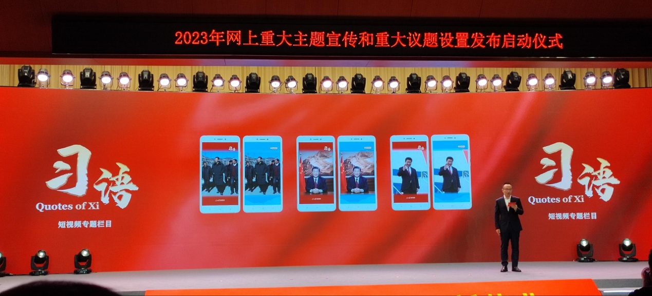圖為“團(tuán)結(jié)奮進(jìn)新征程 奮楫揚帆再出發(fā)”2023年網(wǎng)上重大主題宣傳和重大議題設(shè)置發(fā)布啟動儀式主會場