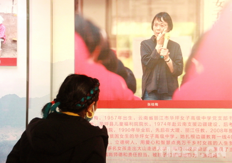 在眾多參觀展覽的人群中,有一位身著藏裝的西藏基層?jì)D聯(lián)干部,十分醒目,她總是笑意盈盈,用手機(jī)拍攝記錄著展覽的重點(diǎn),時(shí)不時(shí)與同伴分享心得。她叫索朗德吉,是來自西藏自治區(qū)林芝市工布江達(dá)縣江達(dá)鄉(xiāng)太昭村的婦聯(lián)主席,“通過觀看展覽,我系統(tǒng)了解到,百年來,我們黨始終堅(jiān)持把實(shí)現(xiàn)婦女解放和發(fā)展、實(shí)現(xiàn)男女平等寫在自己奮斗的旗幟上?,F(xiàn)在的西藏,男女平等,婦女也能當(dāng)領(lǐng)導(dǎo),在工作崗位上展現(xiàn)著‘婦女能頂半邊天’的巾幗力量。這事兒如果放到舊西藏,那是想都不敢想的?!彼骼实录f,“在中國(guó)共產(chǎn)黨的領(lǐng)導(dǎo)下,我們村早已發(fā)展成為天上有航線,地面有鐵路,生活富裕的小康村,聽黨話、跟黨走是太昭人不變的信念,回去后我要把聽到的、看到的、學(xué)到的,不光講給村里人,更要講給縣里人,激發(fā)出她們的民族自豪感,共同澆灌民族團(tuán)結(jié)的參天大樹?!?/p>