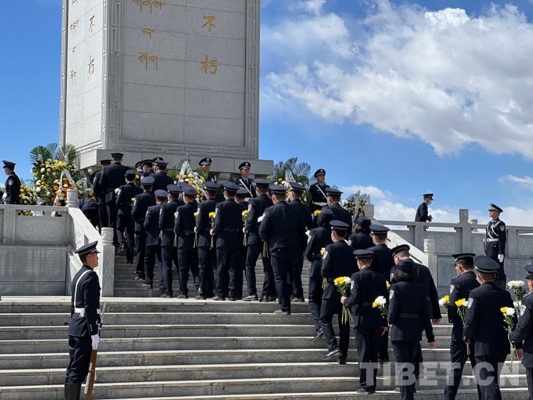 圖為軍警代表向革命先烈敬獻(xiàn)鮮花 攝影:德吉卓瑪