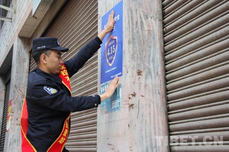 圖為聶拉木邊檢站民警在口岸轄區(qū)內(nèi)張貼“全民國(guó)家安全教育日”宣傳海報(bào) 攝影:軒紅偉