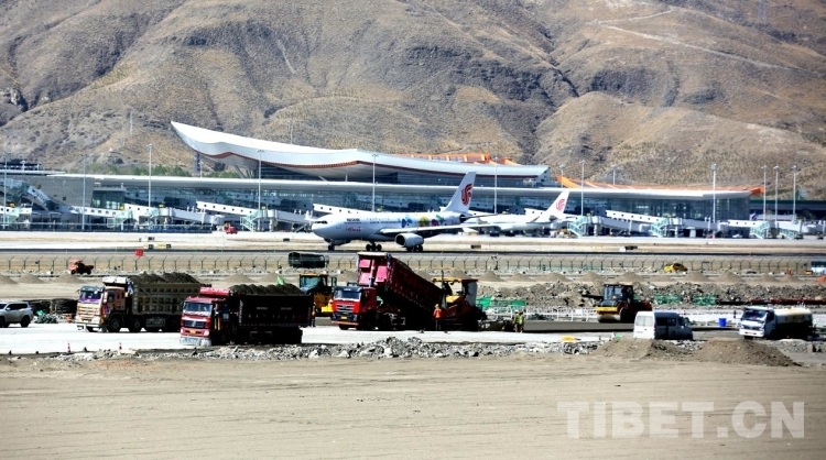 中國西藏網(wǎng)訊 各式工程機械緊張有序作業(yè),不遠處一架架飛機駛遠或降落……這正是西藏自治區(qū)拉薩貢嘎機場新建第二跑道工程如火如荼建設的場景。