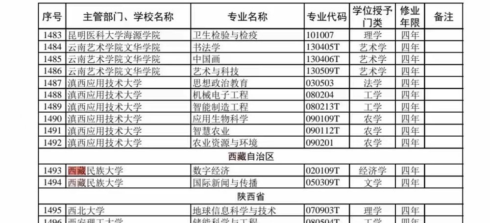 經過不懈努力,近日喜報傳來,西藏民族大學財經學院獲教育部批準新增數(shù)字經濟專業(yè),這是西藏首個數(shù)字經濟本科專業(yè),學制四年,授經濟學學士學位。