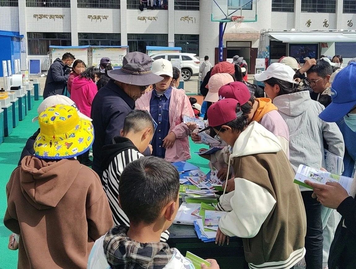 圖為日喀則市科學(xué)技術(shù)協(xié)會(huì)以科普大篷車進(jìn)校園活動(dòng)為契機(jī),聯(lián)合亞?wèn)|縣委宣傳部、縣科技局在縣中學(xué)舉辦的“推進(jìn)全民閱讀 共創(chuàng)書香珠峰”主題宣傳活動(dòng)現(xiàn)場(chǎng)