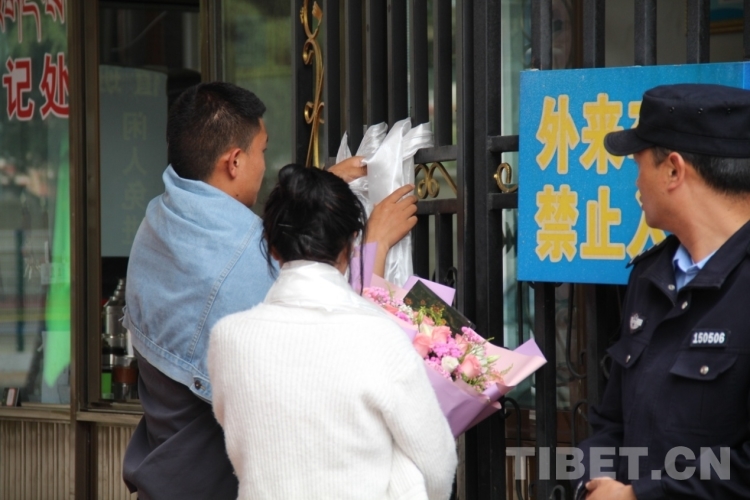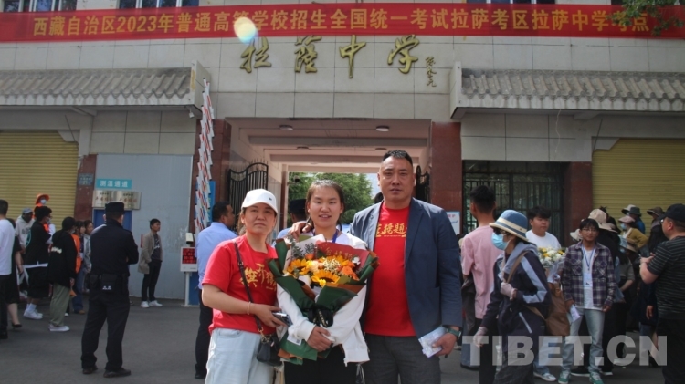 6月8日下午,在拉薩中學(xué)考場(chǎng)外,家長們穿著藏裝、旗袍、印有“金榜題名”“旗開得勝”等加油短袖,手捧鮮花和哈達(dá)迎接第一波結(jié)束高考的考生?!敖裉欤|女終于要結(jié)束高中生活了,希望她能如愿考上軍校?!眲?span style="background-color: rgb(255,255,255)">先生夫婦穿著專門為女兒定制的加油短袖,備好鮮花到考場(chǎng)外迎接女兒。像他們一樣,考場(chǎng)外拿著鮮花與哈達(dá)、祝賀橫幅、勵(lì)志牌等的考生家屬和親戚漸漸多了起來。